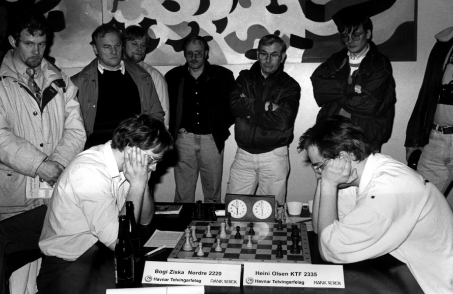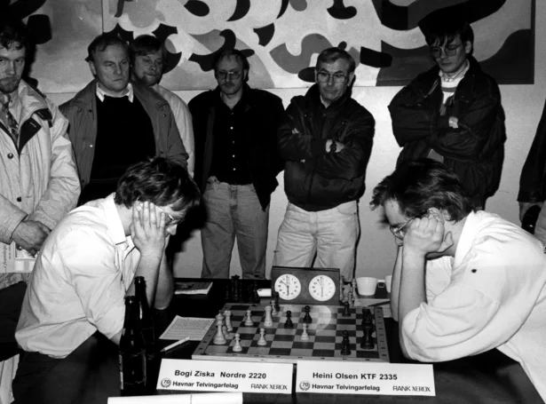 Fyrst í 90-unum - á sumri 1992 - koma tveir av heimsins bestu telvarum til Føroyar at vera eina tíð. Hetta eru Predrag Nikolic og Ivan Sokolov úr Bosnia-Herzegovina. Teir eru í veruleikanum flóttamenn, tí kríggj herjar í heimlandinum. Klaksvíkar Talvfelag hýsir Nikolic, og Havnar Telvingarfelag Sokolov. Báðir taka sær fyri at venja telvararnar í hesum feløgum, og ivaleyst vekja teir ansin fyri telving millum teir yngstu.
