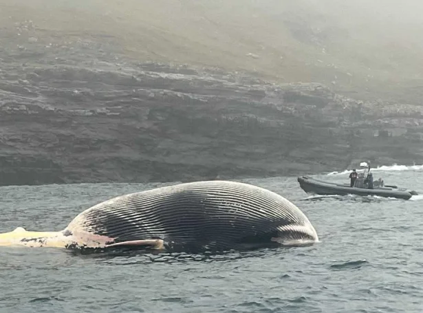 Fyrrapartin kom ein stórhvalur rekandi inná Sørvágsfjørð. Talan var um ein nebbafisk. Nebbafiskurin luktaði sera illa verður sagt.
