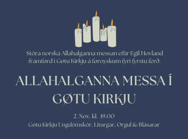 Talan er ikki ein konsert sum so, tí kirkjuliðið luttekur sera aktivt gjøgnum alla messuna við nýggjum sangum, sum vera lærdir, við at kórið syngur fyri. Men hendan serskrivaða Allahalganna messan hevur nógvan sera vakran tónleik í sær.
