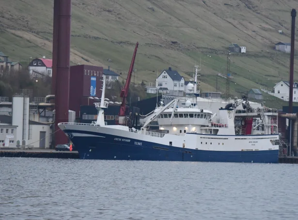 Arctic Voyager er komin á Fuglafjørð við 1.850 tonsum av svartkjaffti, sum teir landa til Havsbrún.