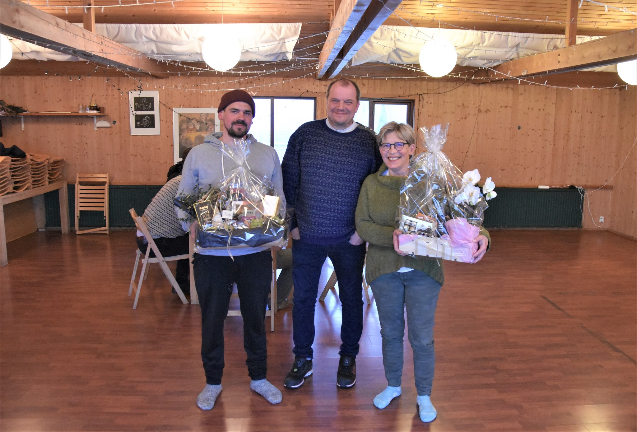 | f.v. Hallur Hansen, fráfarandi formaður. Brandur í Dali, formaður. Elspa Petersen, fráfarandi næstforkvinna. |