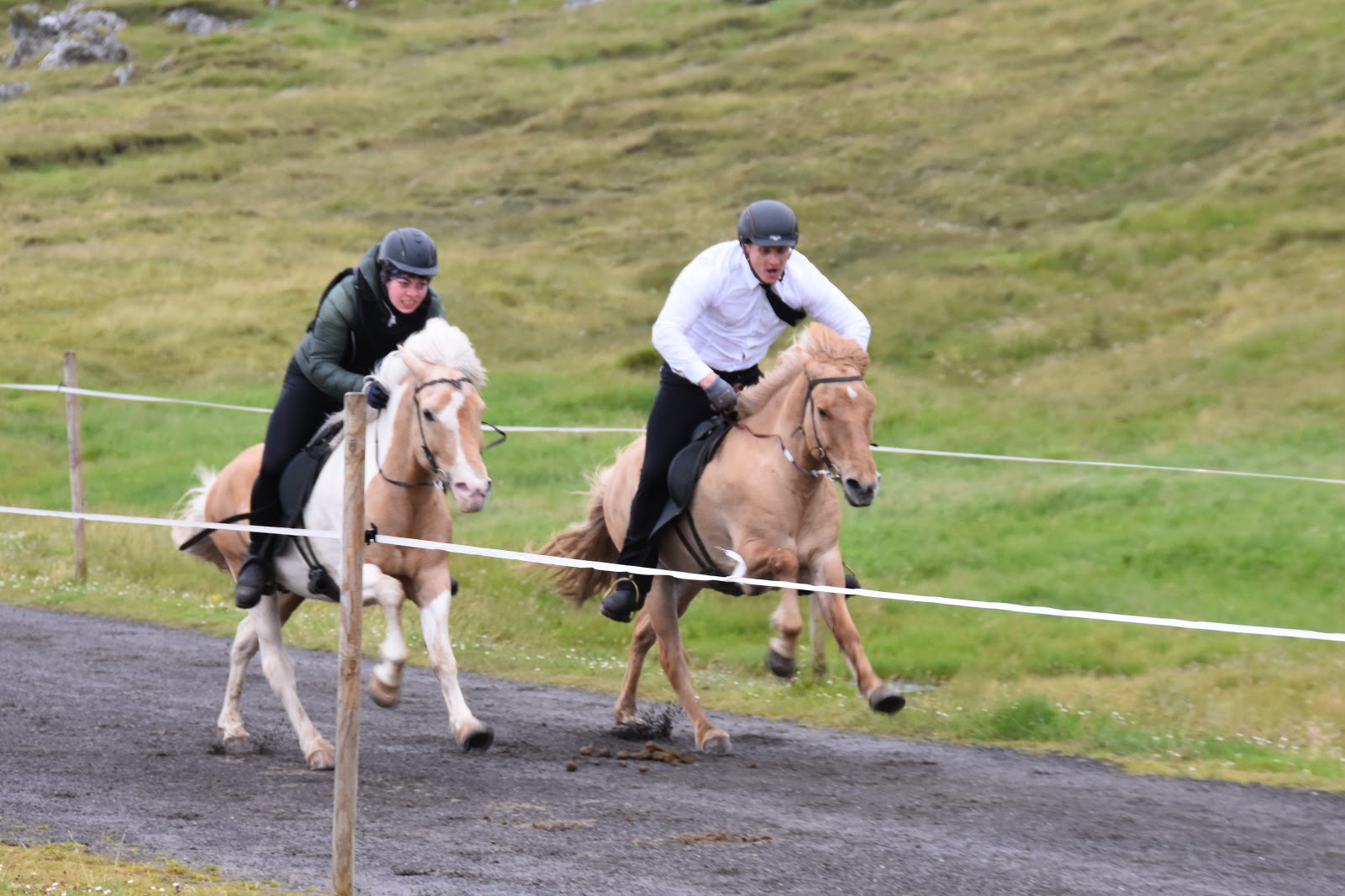 Hóast sirm og ivaveður vóru fitt av áskoðarum komnir niðan í Marknagil at hyggja eftir kappríðing. Tey fingu eisini eina góða løtu saman og hóast sólin ikki sá, so batnaði veðrið munandi meðan kappast var.