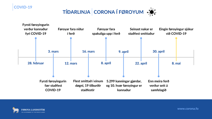 Fortreytin fyri góðu úrslitunum hevur verið, at røtt og neyðug stig vóru tikin tíðliga, samstundis sum almennu tilmælini um frástøðu og reinføri hava verið vird. Tilmælini fara at standa við eina tíð afturat, samstundis sum øll ferðandi verða staðiliga biðin um at fara í heimauppihald.
