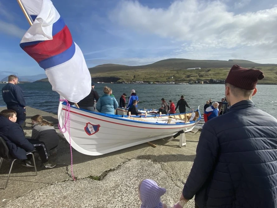 Á samkomuni hugleiddi Eigil Rasmussen um kappróður frá gamlari tíð, tá felagið bleiv stovnað, um hvussu alt er broytt til dagin í dag. Tá var Vesturleið álitið, tá farið var til stevnur. Nýggja 5-mannafarið fekk navnið Frúgvin. Heilt fitt av bygdarfólki var til hátíðarløtuna. Á vágni var gamli Miðvingurin, hin fyrsti sum Niclas í Koltri smíðaði til felagið.