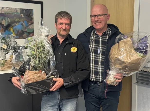 Til fráfaringarløtuna mikudagin heiðraðu vit eisini ein annan mann, sum hevur verið áliti í Sørvági næstan líka leingi sum brandleiðarin. Mervin Falkvard hevur verið brandmaður í 38 ár, og vit ynskja at takka honum fyri trúgva tænastu.