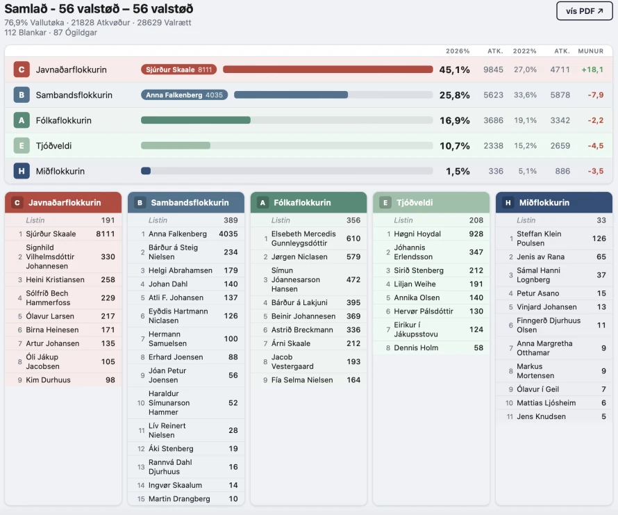 Stór vinnarin í kvøld verður Sjúrður Skaale og Javnaðarflokkurin.
