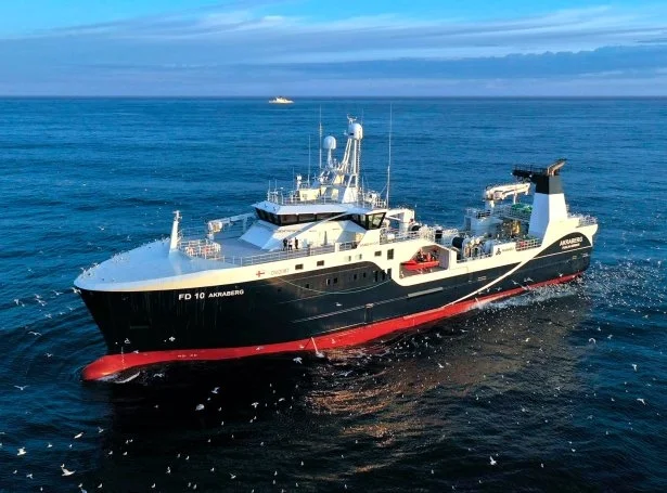 Fuglafjarðartrolarin Akraberg siglir heim úr Barentshavinum, teir hava 1.300 ton og harav 250 tons av súrløgu.