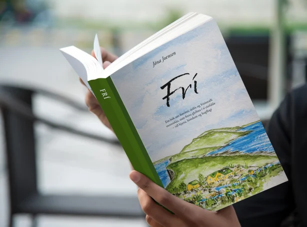 Tað er Jóna Joensen, ættað úr Syðrugøtu, búsitandi í Sveis, ið hevur skriva bókina FRÍ. Íblásturin kemur frá uppvøkstrinum í Føroyum, ferðum kring knøttin og lívinum á garðinum í Sveis, sum hon, saman við manni sínum Thomas, hevur umskapað til eitt gistingarhús og eina sjálvbjargna oasu við grønmetið, fruktum, urtum og víni.