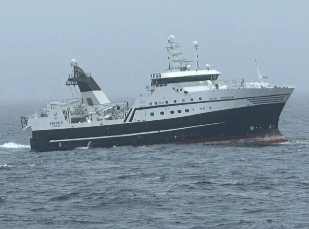 Emerald hevur fiskað kvotuna, sum teir eiga í Barentshavinum - teiir hava 600 tons, nú teir eru komnir heim, harav eru 100 tons kongafiskur, 400 tons toskaflak, 20 tons av lýsi og góð 100 tons av mjøli.