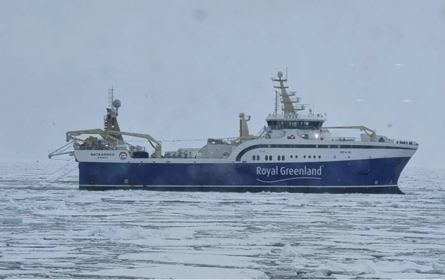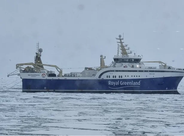 Kærar heilsur frá føroyingunum umborð rækjutrolaranum Nataarnaq.
