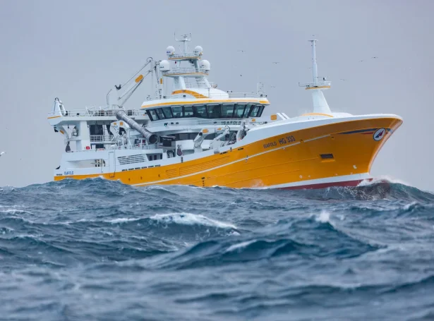Danska uppisjóarskipið - Isafold - er komin á Fuglafjørð við 2.050 tonsum av svartkjafti, sum teir landa til Havsbrún.