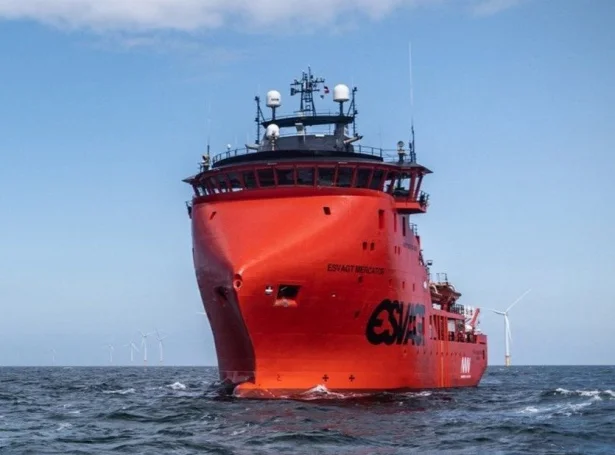 Heilsan føroyingarnir við Esvagt Mercator.