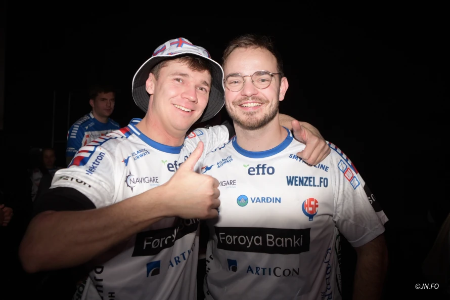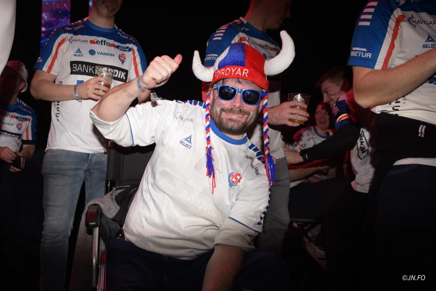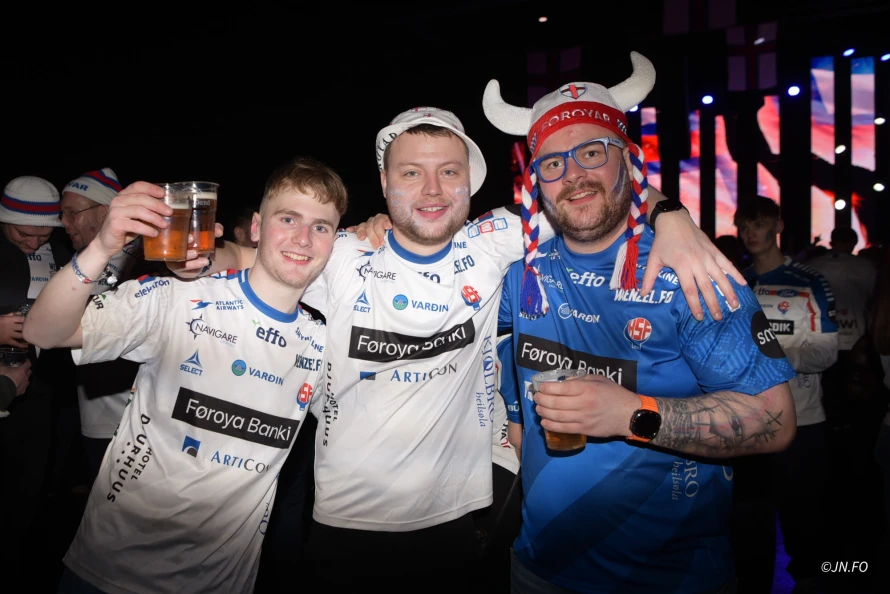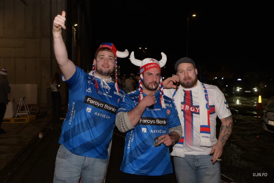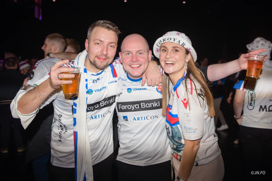 Lagið var ógvuliga gott á føroysku áskoðarunum aftaná søguliga sigurin á Montenegro. Vit tóku nakrar myndir til afterparty, sum var aftaná dystin.