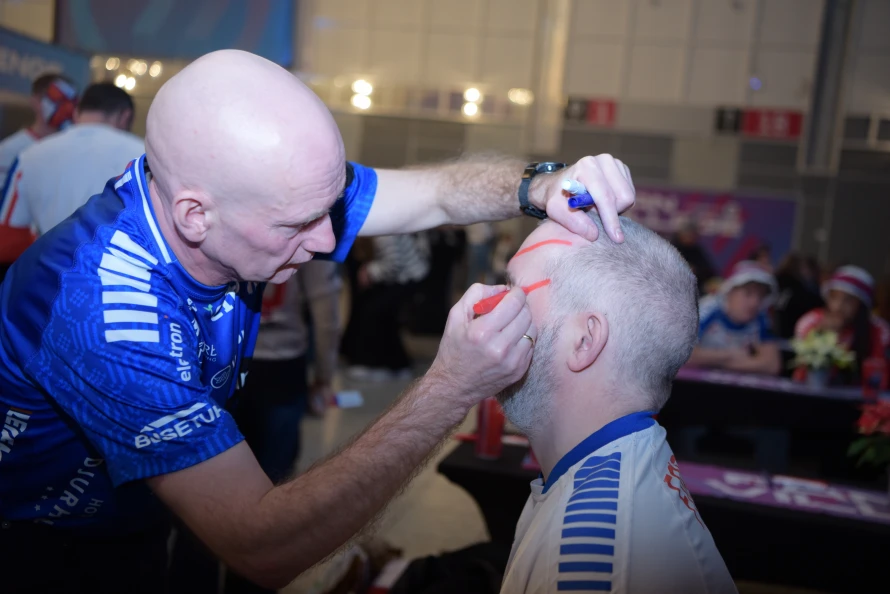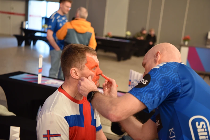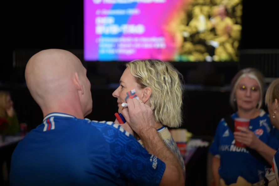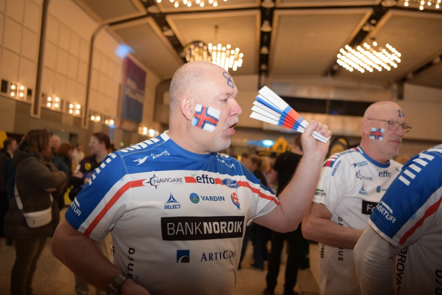 Myndir: Føroysku áskoðarnir hita upp áðrenn dystin ímóti Serbia