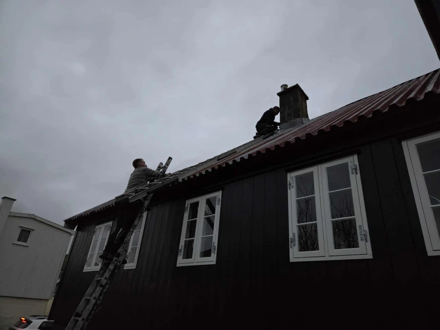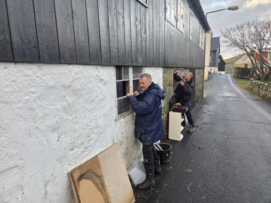 Snimma í morgun hittust eldhugaðir menn í Steigartúni. Fyrst til morgunkaffi og síðan til arbeiðs. Arbeiðslistin var langur, men teir fingu bilbugt við tí mesta og nú fer at líkjast rundan um fyrsta skiparaskúla í Føroyum. Myndirnar tala fyri seg.