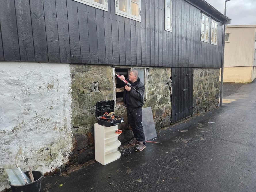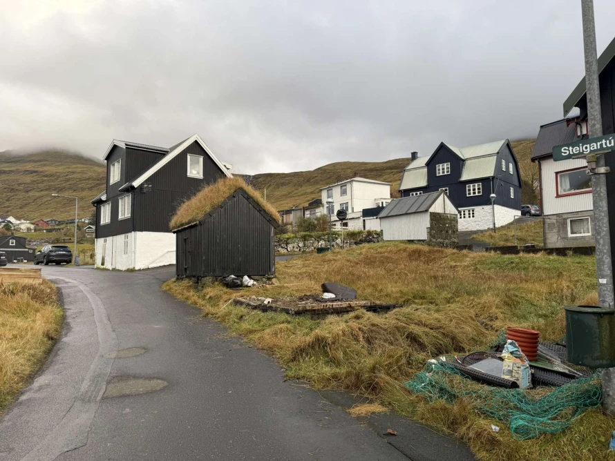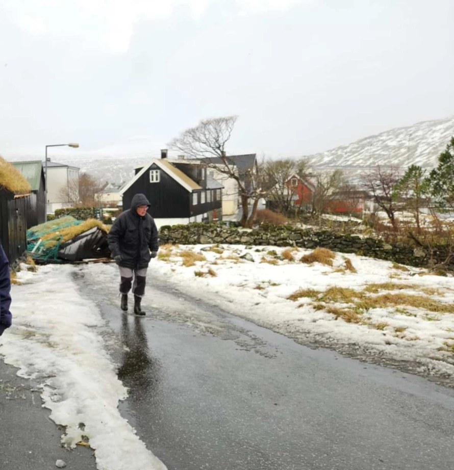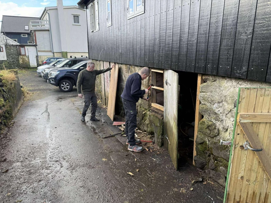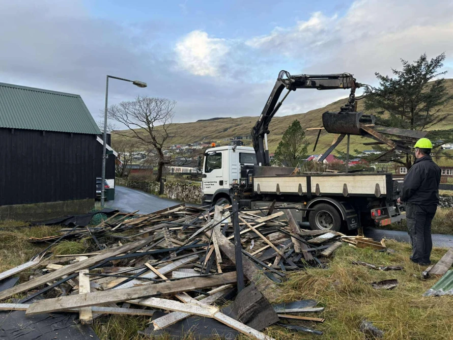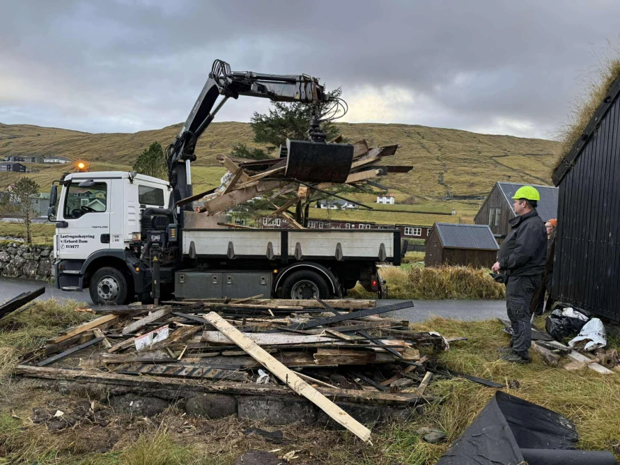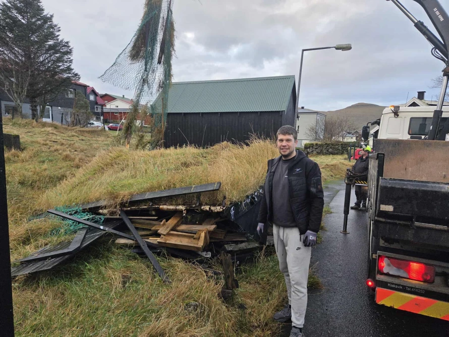 Hjallurin fórst í storminum tann 24. november 2024. Ætlanin er at fáa hjallin gjørdan í stand aftur, tað uppgávuna hevur Emil Hentze átikið sær.