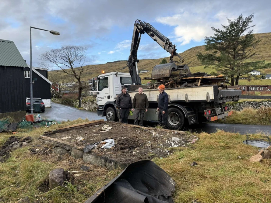 Vit fara eisini at takka Erhardi Dam fyri at sponsorerað kranabilin til dagin, hann gjørdi allan munin í sambandi við niðurdotna hjallin, sum fórst í storminum tann 24. november 2024. Ætlanin er at fáa hjallin gjørdan í stand aftur, tað uppgávuna hevur Emil Hentze átikið sær.