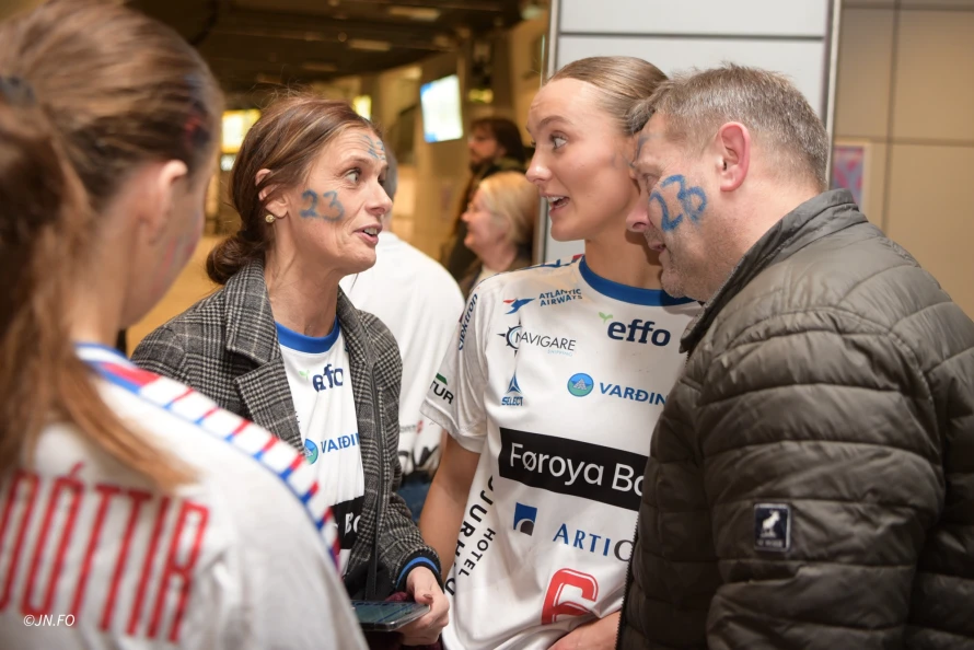 Aftaná dystin í kvøld komu spælararnir at heilsa uppá áskoðararnar