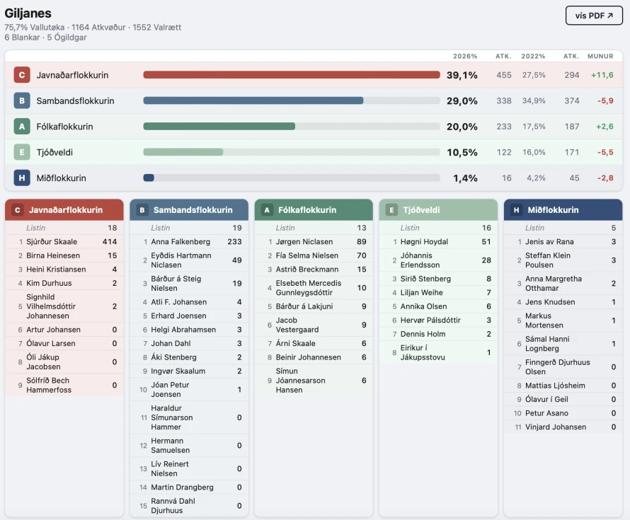 Javnaðarflokkurin fekk 39,1% á Giljanesi