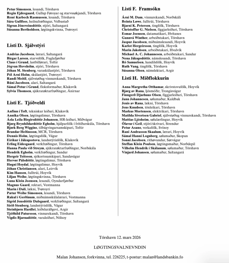 Valevnalistar til løgtingsvalið
