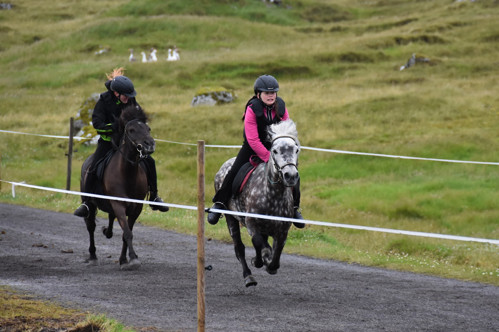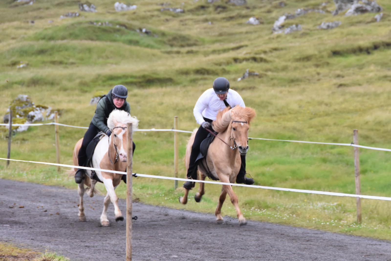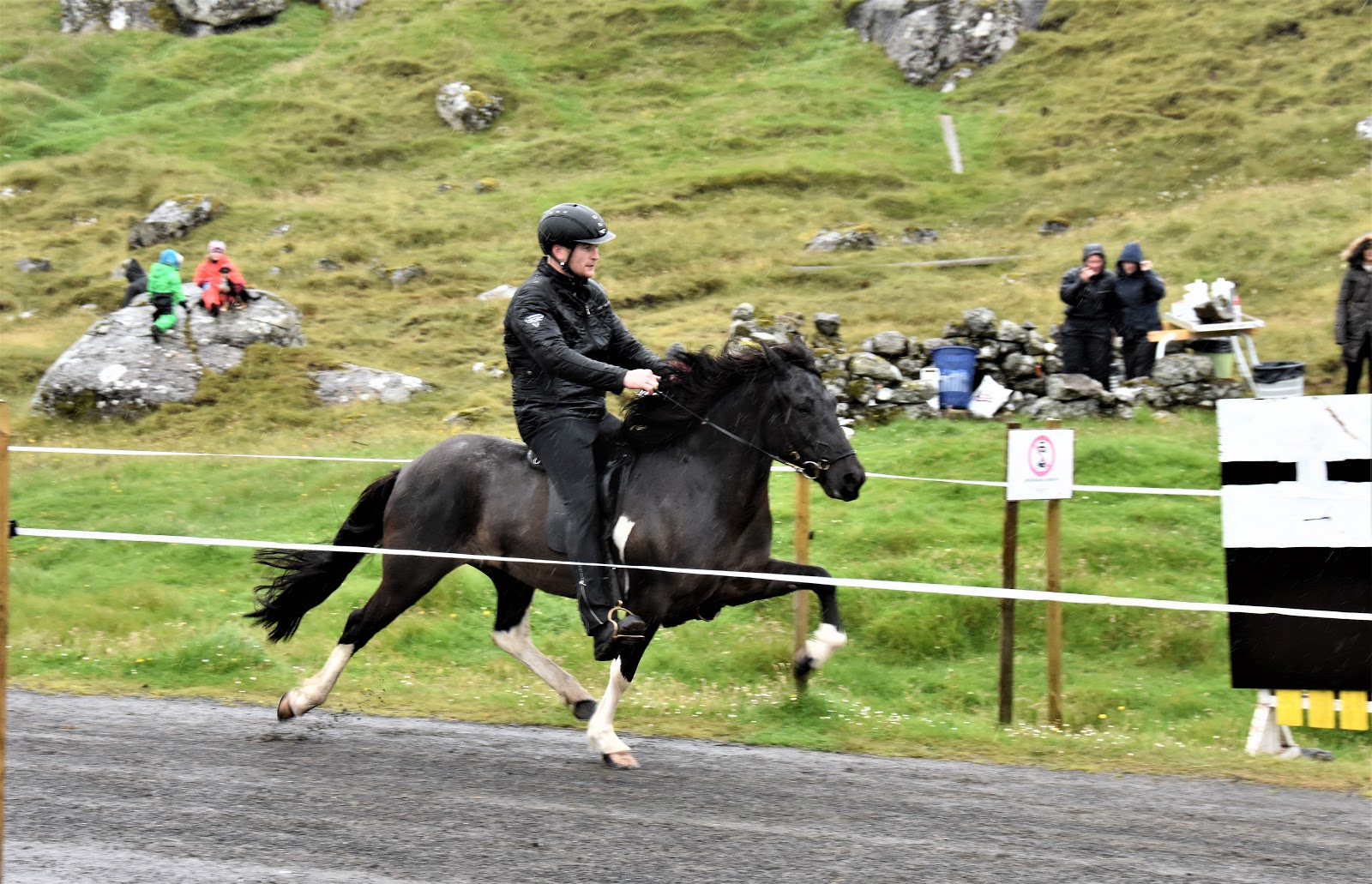 Hóast sirm og ivaveður vóru fitt av áskoðarum komnir niðan í Marknagil at hyggja eftir kappríðing. Tey fingu eisini eina góða løtu saman og hóast sólin ikki sá, so batnaði veðrið munandi meðan kappast var.