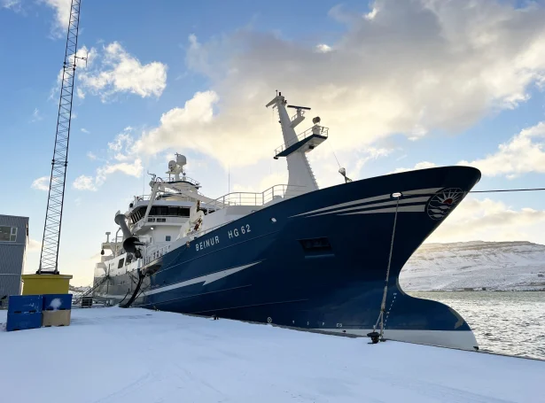 Beinur er komin á Tvøroyri við 750 tonsum av sild, sum teir landa til Varðan Pelagic.