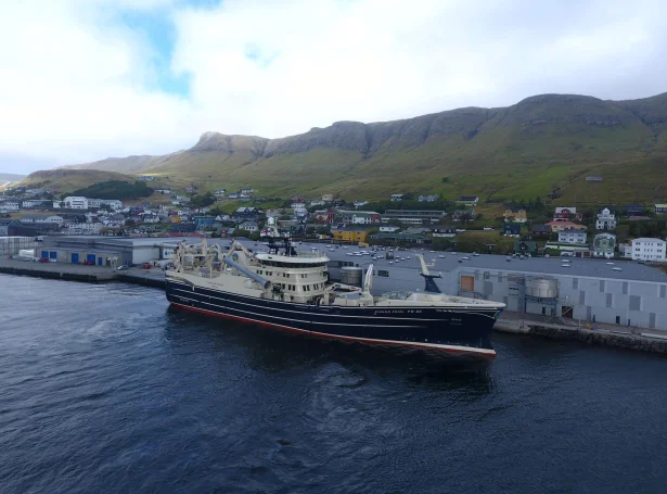 Finnur Fríði kom á Tvøroyri í gjár við 1.700 tonsum av svartkjafti, sum teir  skulu landa til Varðan Pelagic.