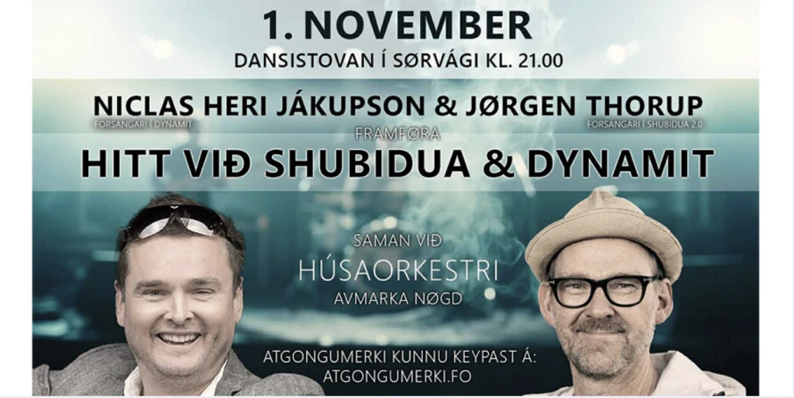 Niclas Heri Jákupson (Dynamit) og Jørgen Thorup (Shubidua) spæla í Dansistovuni í Sørvági í kvøld.