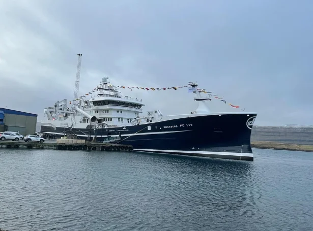 Høgaberg kom á Fuglafjørð í gjárkvøldið við 900 tonsum av sild, sum teir landa til Pelagos, teir verða liðnir at landa seint í kvøld.