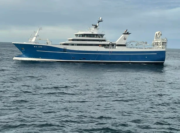 Christian í Grótinum er komin í Ánirnar, har teir bíða til teir eiga landingartørn hjá Havsbrún. Teir hava fulla last av svartkjafti 3.450 tons.