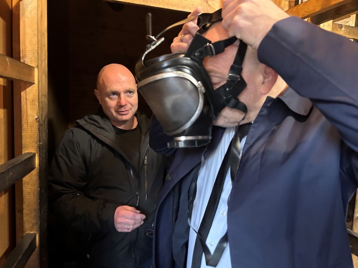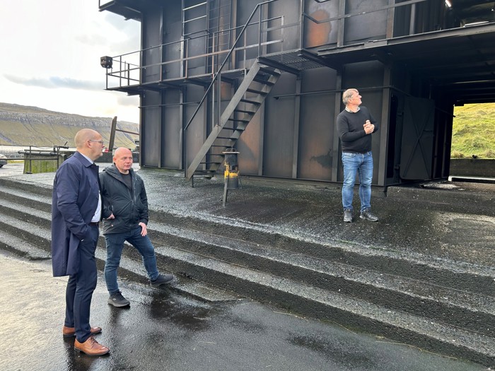 Djóni Nolsøe Joensen, landsstýrismaður, hevur verið á vitjan á Trygdardeplinum við Áir. Deildarleiðarin á Trygdardeplinum, Frífinn Nolsøe, tók ímóti saman við stjóranum á Vinnuháskúlanum, Símun Poulsen.