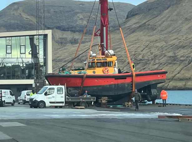 Um 00:30 tíðina í nátt var Pressarin fingin til bryggju í Sørvági, og hava fólk frá Sørvágs sløkkiliðið hildið stand við fimm pumpum í alla nátt til hann bleiv hivaður uppá land um 9 tíðina í morgun.